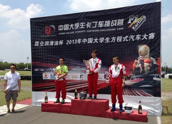 本网讯 7月16日至17日,由中国大学生方程式汽车大赛组委会主办的2013中国大学生卡丁车挑战营(第二站)在上海国际赛车场卡丁车世界顺利举行。FSAE-华汽车队派出首席车手陈棣豪前往上海参加本次挑战赛,并获得了亚军。
