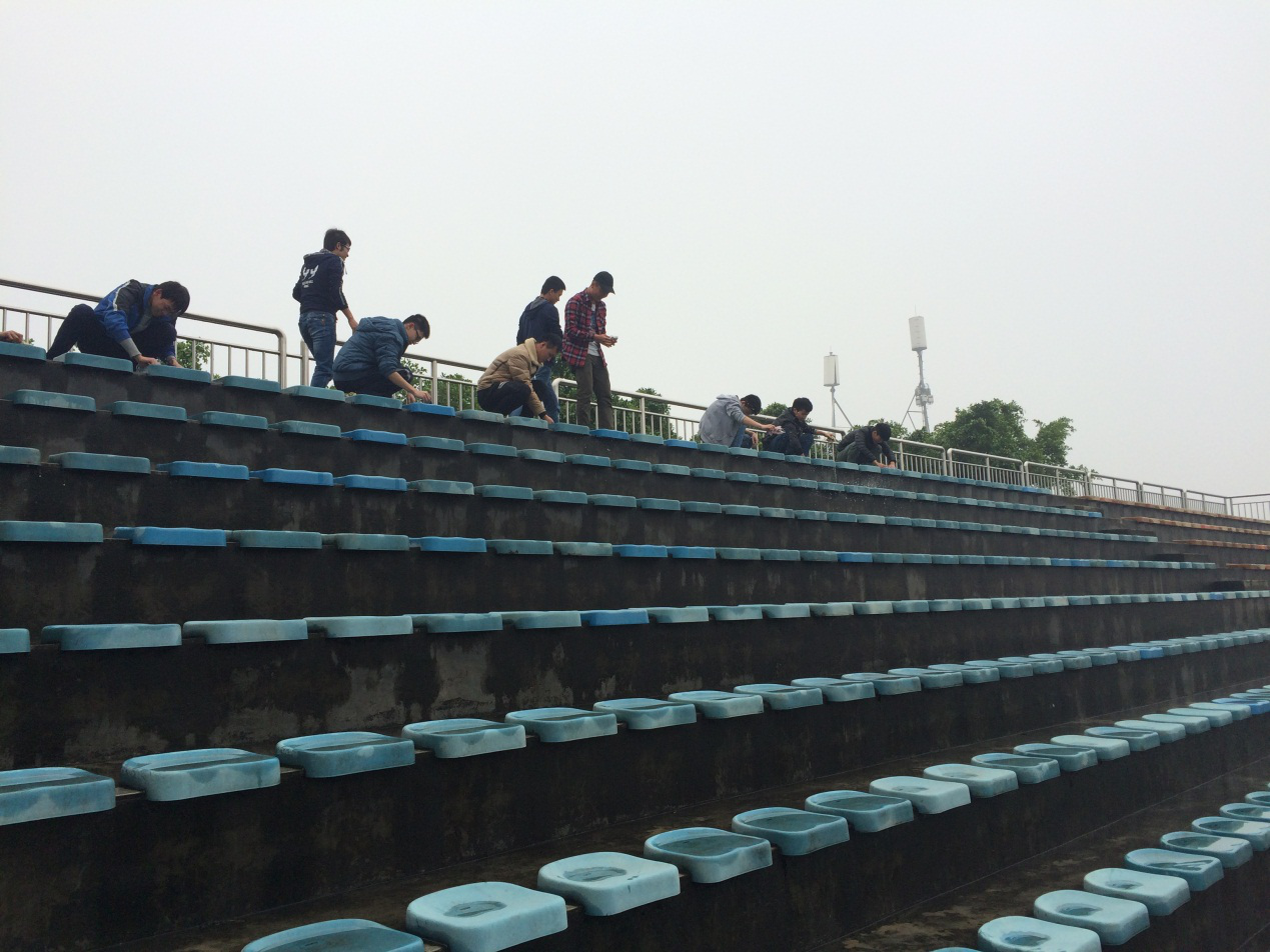 3月18日,同学们以团支部为单位,紧紧围绕着院级团委的部署,根据班级的活动方案,全体积极分子牺牲了午休的时间,带上抹布到了主席台清理打扫主席台上的座椅的垃圾。尽管近期天气经常下雨,座椅上也积满了水,但这丝毫没有影响到同学们进行学雷锋活动的热情。