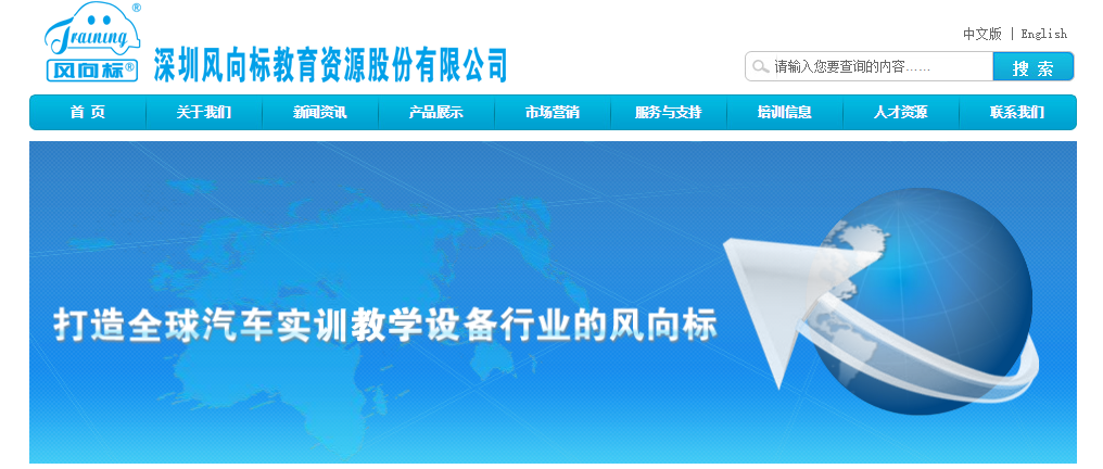 深圳风向标教育资源股份有限公司(原深圳市风向标科技有限公司)成立于2003年1月13日,是专业从事机电设备、空调制冷、汽车及其它教学培训设备的技术开发与销售、教学软件的技术开发与销售、教学课件的设计与销售的国家高新技术企业与软件认定企业。系人力资源和社会保障部职业能力建设司《汽车维修专业职业技能实训和鉴定设备技术标准与配置标准》制定的主编单位,中国教学仪器设备行业协会会员企业,广东省教学仪器设备行业协会会员企业,2012~2015年全国职业院校技能大赛高职组(汽车检测与维修赛项)指定器材供应商,第42届世界技能大赛汽车技术选拔赛指定器材供应商。公司集科研、设计、生产、销售、服务于一体,拥有12000多平方米的现代化标准工业厂房,并于2010年1月通过ISO9001:2008产品质量管理体系认证,2010年9月通过ISO14001:2004环境管理体系认证。目前在国内外共设有28个办事处与售后技术服务中心,已形成全球服务网络体系。产品远销东南亚、中东、非洲、南美与欧洲等国家和地区。