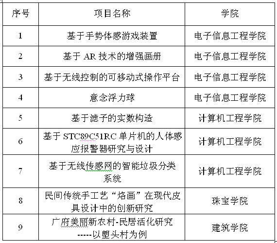 从检查情况来看,提前结题的项目中机械工程学院的“智能续航四旋翼飞行器”、电子信息工程学院的“基于手势体感游戏装置”和“基于AR技术的增强画册”等项目完成情况较好,项目质量比较高,成果比较突出。