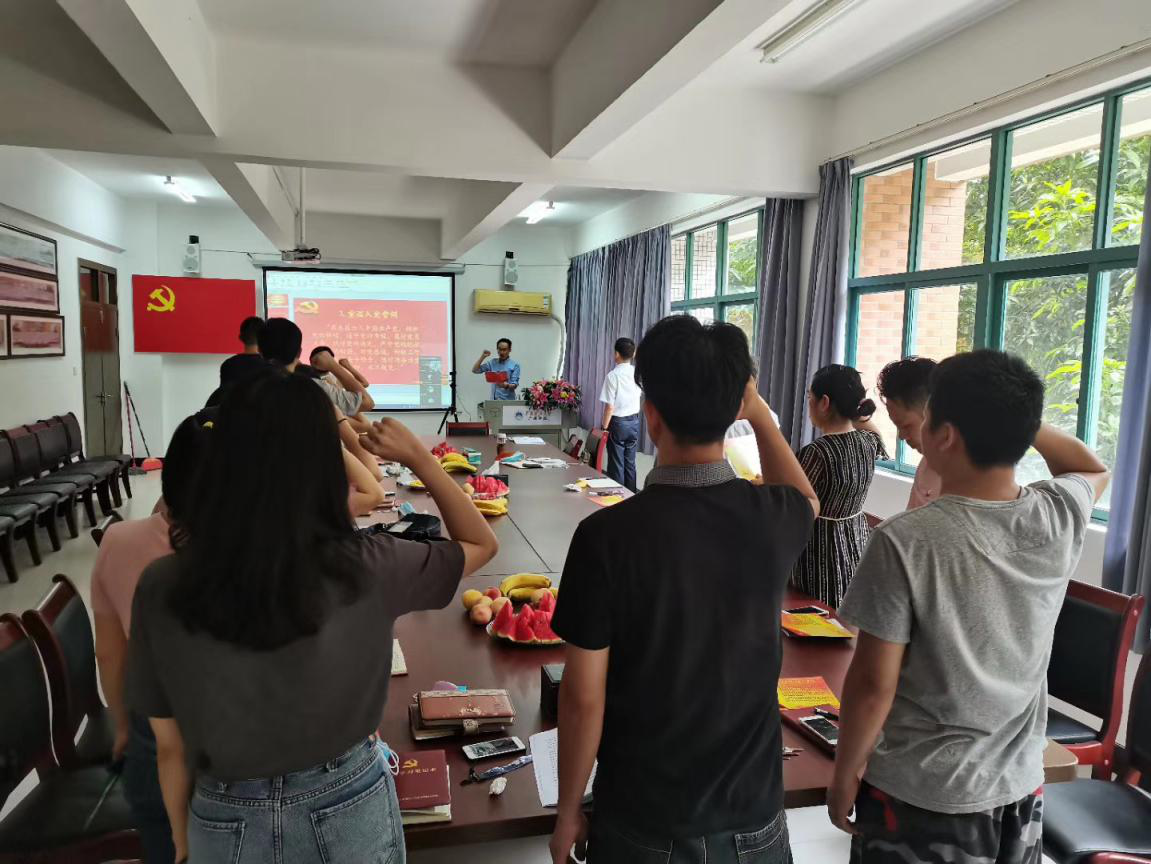 学院总支委员向各位(预备)党员赠送政治生日贺卡并合影留念,以此表达美好祝愿,希望这些同志们在未来不忘初心,砥砺前行。老党员张继锋同志带领大家重温入党誓词。