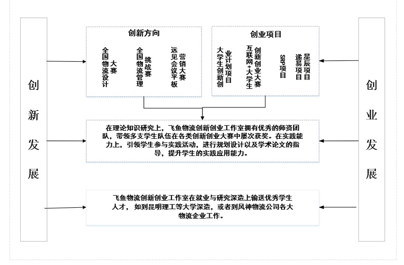 飞鱼物流创新创业工作室组织架构完整,现设有创新部,创业部,办公室部三大部门。