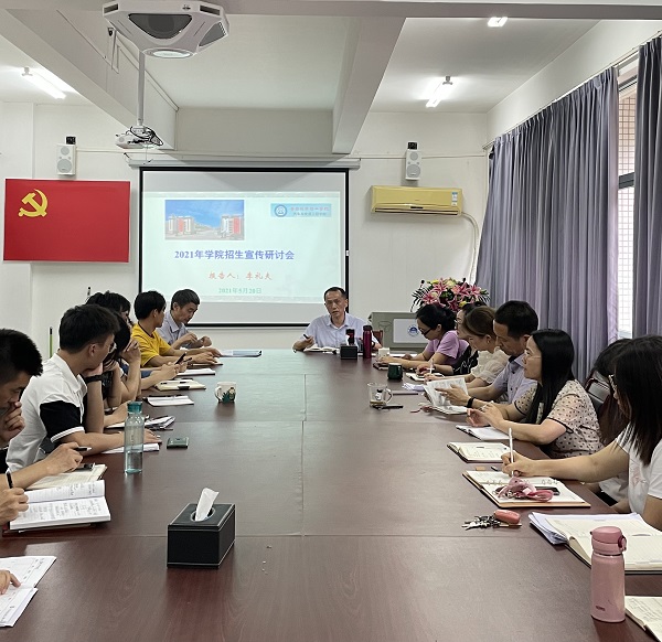 本网讯 (记者文秀、刘慧婷)为进一步加强招生队伍建设,提高招生宣传水平,2021年5月20日,伟德国际victor1946,伟德bv1946官网在B6-203召开2021年度招生宣传研讨会。出席此次会议的领导有院长李礼夫、副院长尚启超、院长助理钟玉华以及全院教师。