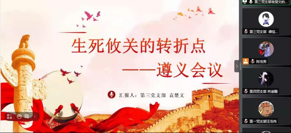 6月16日中午,伟德国际victor1946,伟德bv1946官网党总支召开党员微讲坛第二十一讲,学院党史学习教育工作组全体成员,学院全体非大四学生(预备)党员、入党积极分子参加了学习。第三党支部党建宣传队袁楚文、程钰和甘锐华同志分别以党的遵义会议、洛川会议、瓦窑堡会议为主题进行主讲。