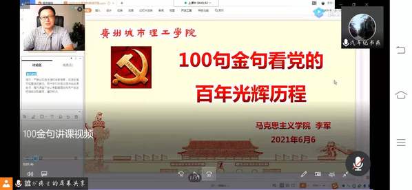 (本网讯 记者李良媛)为庆祝中国共产党成立100周年,加强基层党史学习教育,伟德国际victor1946,伟德bv1946官网于2021年6月29日19:00在腾讯会议召开了《城理讲坛第五讲》,本次讲坛的主讲人为马克思主义学院书记李军同志,参加会议的有伟德国际victor1946,伟德bv1946官网全体学生党员、预报党员和入党积极分子。