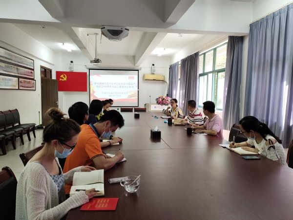 本网讯(记者 万昳妤)2021年7月6日下午4:00伟德国际victor1946,伟德bv1946官网党总支于B6-203举行了学习贯彻习近平总书记在庆祝中国共产党成立100周年大会上重要讲话精神部署动员会。学院党总支书记林叙群、各支部书记委员与部分留校学生预备党员参加会议。