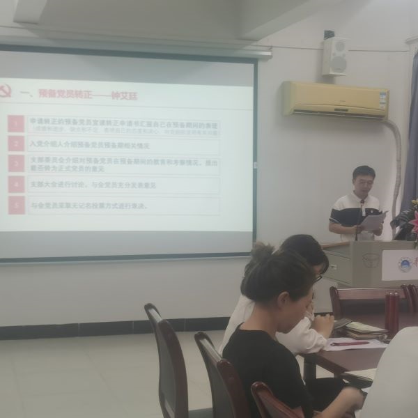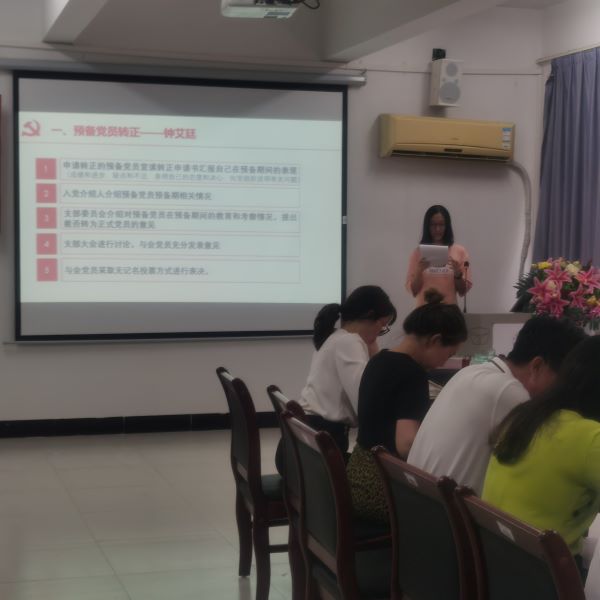 会议第二项议程:入党介绍人汤斯敏同志、丁伟华同志就预备党员的情况向组织作了汇报。