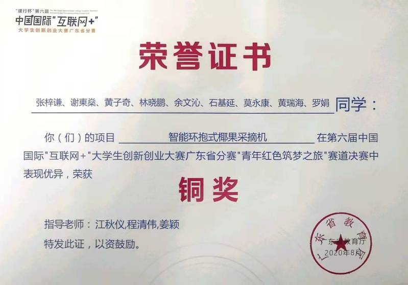 1-智能环抱式椰果采摘机(国家级铜奖)