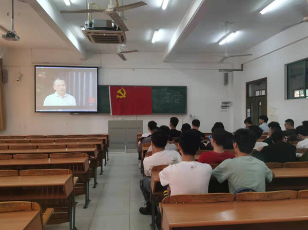 首先由领学人-入党积极分子陈浩男同学分享学习心得,详细讲述了对庆祝建党100周年习近平总书记讲话精神的认识。会上,第四党支部全体成员认真观看了《庆祝建党100周年习近平总书记讲话精神》的专题宣讲视频。
