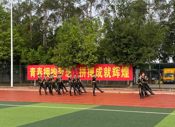 随着国旗护卫队队员们迈着铿锵有力的步伐, 上午8时整,升旗仪式正式开始。激昂的《义勇军进行曲》奏响,五星红旗冉冉升起,全场师生面向国旗行注目礼,向我们伟大的祖国致以最崇高的敬意!