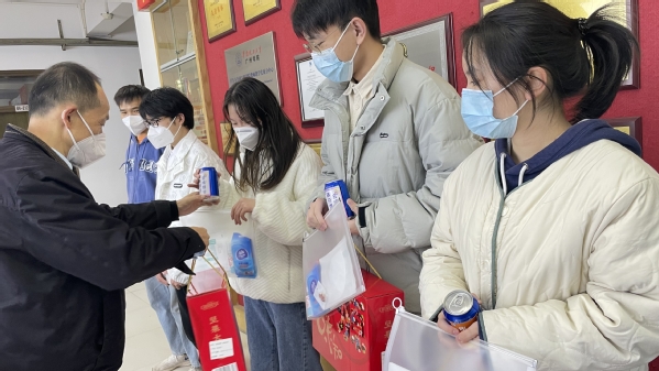 李礼夫给在场的每一位考研学子送上慰问品,送上诚挚的关怀和由衷的祝福。同学们纷纷表示感谢“我们学校真好!”“我们很幸运,能够成为广城理的学生!”“我们会好好加油的!”等等。