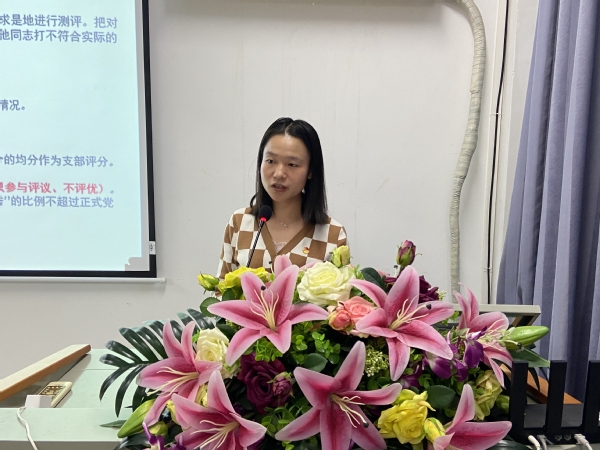 随后,学生第一党支部宣传队党小组全体对照所学文件精神和党员义务等,结合实际,查找不足,积极开展批评和自我批评。每位同志自我批评之后,再由其他同志本着“团结-批评-团结”的方针和“对组织负责、对同志负责、对自己负责”的原则对发言的同志进行客观地评议和评分,实事求是、客观公正地进行测评,肯定优点,对不足之处提出建议。
