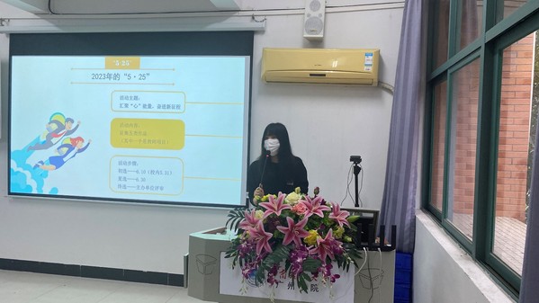 随后,邱冰妍从“5·25”活动的名字含义和由来对活动由来做了简要的介绍,她指出,本次活动共包含“妙笔绘初心”心理漫画、“凝心‘剧’力,悦动青春”心理剧等5个项目的作品征集。学院本次承办的心理漫画征集活动,在历年的心理活动月中也收集到了很多优秀的作品,希望大家积极主动参与,充分发挥个人特长,提交优秀作品。