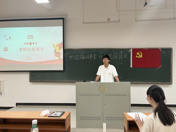 活动最后,张锦浩总结发言,希望支部全体同志们通过观看学习、分享体验等活动,从祖国的发展道路以及革命先烈的感人故事中汲取蓬勃的力量,进一步坚定理想信念。他指出,同学们作为当代大学生,积极进取、敢于担当,抓住时代机遇,勇立时代潮头,不负时代赋予的使命担当,为社会主义建设贡献自己的青春力量!