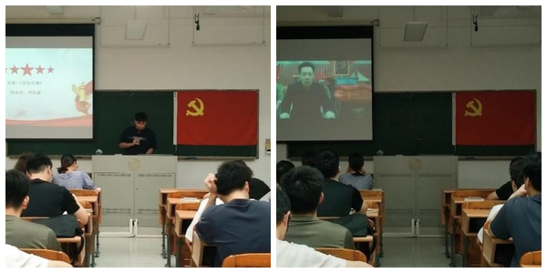 9月26日下午在A1-310,支部全体同志聚在一起,为祖国庆生。大家一起观看了优秀作品展示视频,现场听取了郭衍鑫同志的朗诵-《国庆晨曦》,感受同志们对于伟大祖国的满腔热爱,激起了在座每一位听众对国家的热爱、自豪以及对未来美好生活的无限憧憬。