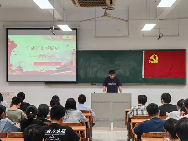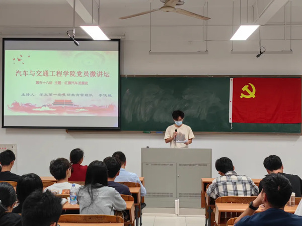 微讲坛第三项,由学院党总支书记林叙群作总结发言,红旗汽车的发展史不仅是历史的见证,更是精神的象征。它让我们深刻体会到,在挑战与机遇并存的环境中,坚定的信念和不懈的努力能够开辟出成功的道路,激励我们在面对汽车工业的技术壁垒和市场竞争时勇往直前,不断追求卓越和创新。同时,希望同学们能够以红旗汽车的发展历程为鉴,将理论知识与实践相结合,从实践中汲取经验,通过勤奋学习和深入思考,更好地指导自己在未来汽车行业的发展方向,为中国汽车工业的崛起贡献自己的力量。