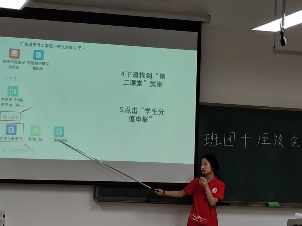 座谈会上,组织部负责人王锶埼将支部的团日活动和组织生活会的开展做了详细讲解,并对团支书与组织委员的工作职责进行了说明。此外,王锶埼展示了广东共青团智慧团建系统上关于团务工作的一系列操作,从团日活动录入,到团费缴纳查询,再到推优大会等,确保各团支部书记都能熟练掌握。组织部负责人陈艺介绍了第二课堂相关制度,通过实际操作讲解了关于申报学分和查看第二课堂成绩单等项目。