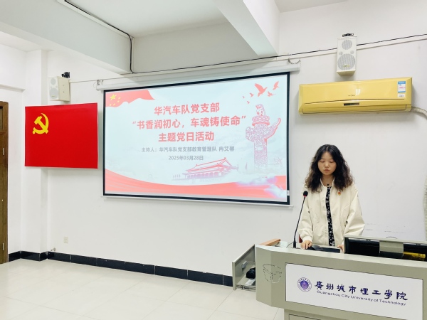 本网讯(记者 高远)为营造“爱读书、读好书、善读书”的文化氛围,伟德国际victor1946,伟德bv1946官网华汽车队党支部于3月28日在B6-203举办“书香润初心,车魂铸使命”读书分享会主题党日活动。此次活动有华汽车队党支部书记陈增起同志和全体(预备)党员、入党积极分子参与,由冉艾馨同志主持。