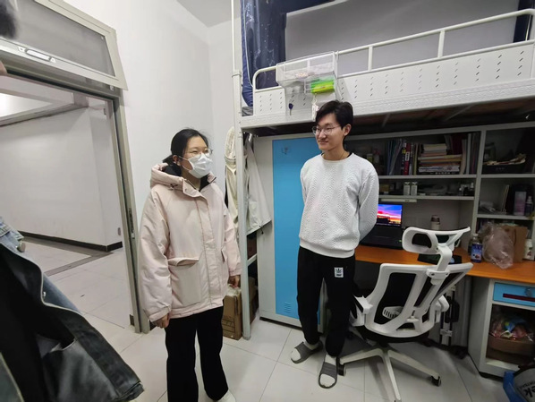 辅导员走访宿舍了解学生返校情况(朱益博 摄)