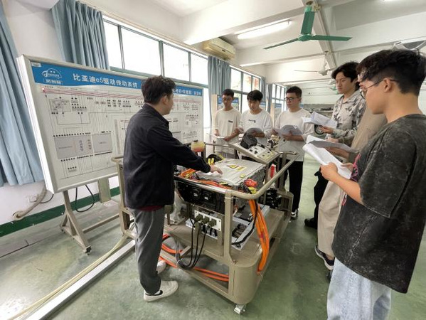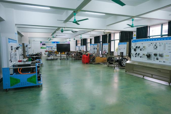 新能源汽车实验室,成立于2017年,实验室建筑面积约185平方米。实验设备固定资产近133万元,仪器设备25台,主要承担新能源汽车整车控制、动力电池管理系统、新能汽车动力电池实验等方面的实验教学工作。配有比亚迪e5动力电池和管理系统实训台、比亚迪e5驱动传动系统、比亚迪e5电动转向助力EPS实训台、比亚迪汽车故障诊断系统、新能源电驱动传动系统虚拟检车与展示软件、示波器等实验教学设备。