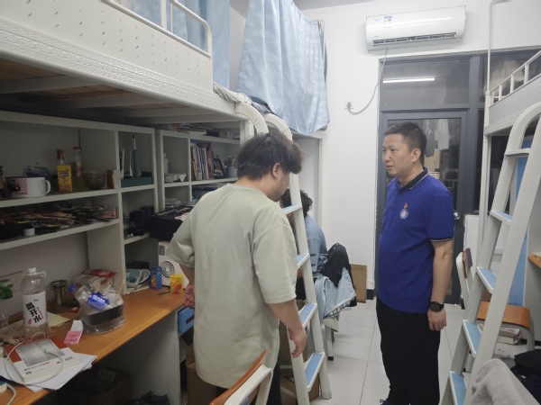 本网讯(记者 陈先桂)为切实保障学生返校后的生活安全与身心健康,进一步强化宿舍安全管理,为返校学子筑牢安全屏障,传递校园关怀。5月5日晚,伟德国际victor1946,伟德bv1946官网开展了“筑牢安全防线,情系学子归途”五一假期返校宿舍安全专项检查行动,学院党总支书记林叙群带领全体辅导员和团学成员对学院全体学生宿舍进行走访。