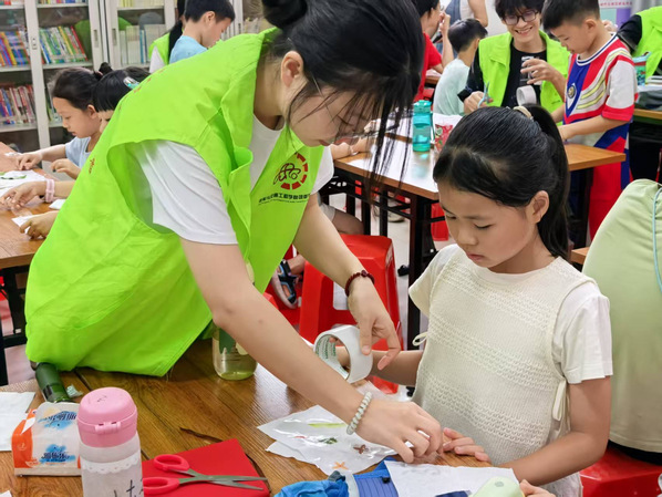 实践团成员协助小朋友制作拓染(张亚君 摄)