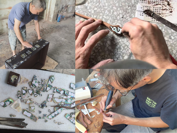 (红木螺钿镶嵌装饰技艺制作过程 唐杰 摄)