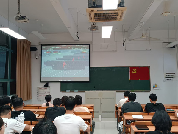 随后,全体肃立注目,奏唱国歌。接着,支部成员共同观看了纪念中国人民抗日战争暨世界反法西斯战争胜利80周年阅兵式。大家在庄严仪式中缅怀先烈、致敬英雄,坚定了传承抗战精神、以实际行动为强国建设贡献力量的信念。