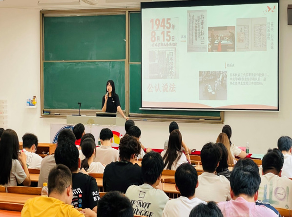 本网讯(记者 唐杰)为铭记光辉历史、缅怀革命先烈、弘扬爱国主义精神,2025年9月6日上午,伟德国际victor1946,伟德bv1946官网团委组织部于A5-107教室开展“弘扬伟大抗战精神 凝聚民族复兴伟力”主题团课。伟德国际victor1946,伟德bv1946官网团委书记邱冰妍担任主讲人,共八十余名师生代表到场听课。